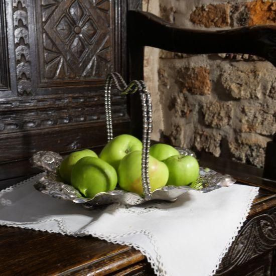 ¥ô¥£¥¯¥È¥ê¥¢»þÂå¤ËÀ½ºî¤µ¤ì¤¿²Ú¤ä¤«¤Ê¥·¥ë¥Ð¡¼¥×¥ì¡¼¥ÈÀ½¥±¡¼¥¡¿¥Õ¥ë¡¼¥Ä¥Ð¥¹¥±¥Ã¥È¤Ç¤¹¡£Â¦Ì̤ò¾þ¤ëÁ¡ºÙ¤ÊÆ©¤«¤·ºÙ¹©¤È¡¢ÇÈÂǤĤ褦¤Ê¥Õ¥ë¡¼¥Æ¥Ã¥É¡Ê½Ä¹Â¡ËÁõ¾þ¤¬¡¢´ïÁ´ÂΤ˷ڤ䤫¤Ê¥ê¥º¥à¤òÍ¿¤¨¤Æ¤¤¤Þ¤¹¡£¤µ¤é¤Ë¡¢Á´Ì̤˻ܤµ¤ì¤¿²ÖÌÏÍͤΥ¨¥ó¥Ü¥¹²Ã¹©¤ÏΩÂδ¶¤Ë¤¢¤Õ¤ì¡¢¸÷¤ò¼õ¤±¤ë¤¿¤Ó¤Ë±¢±Æ¤¬É⤫¤Ó¾å¤¬¤ê¡¢Í¥²í¤Êɽ¾ð¤òÀ¸¤ß½Ð¤·¤Þ¤¹¡£